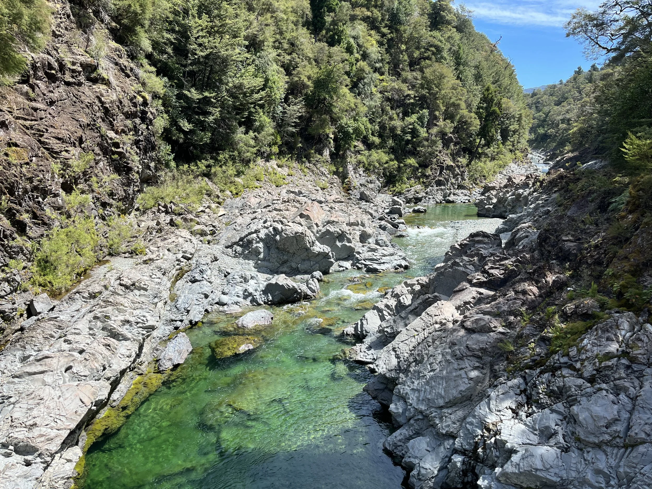 We were a bit worried about having enough time to execute our original plan, which involved getting to the highway at Boyle Village and then walking another 4 hours to Boyle Flat hut on the St James Walkway. Indeed, when we reached the highway, we realized we would not have time to get to the hut before dinner.