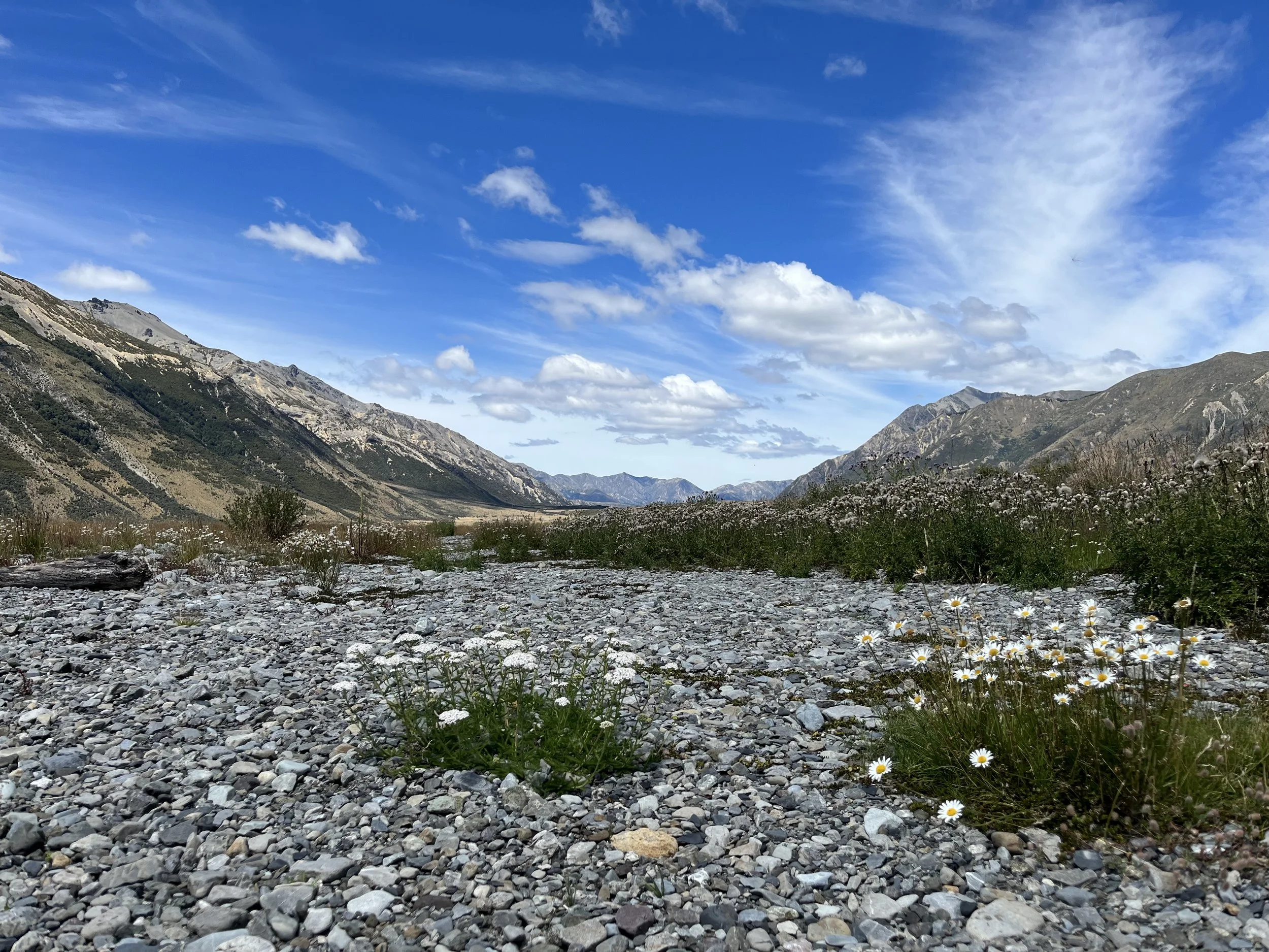 So we forded the Boyle River to reach the side of the highway (and took a dip, of course! The cool water was very soothing on our poor legs). Time was still a bit tight for plan B, so we gave ourselves 10 minutes to get a ride to the other trailhead. After that, we would switch to the other side of the road, and try get a hitch to Christchurch. (It wasn’t just the timing problem that made that option appealing. For one, the Sylvia Tops loop was a lot tougher than we expected. There is also the heavy rain supposed to start tomorrow. And, the last two days seem to have destroyed my shoes which are now riddled with holes.)
